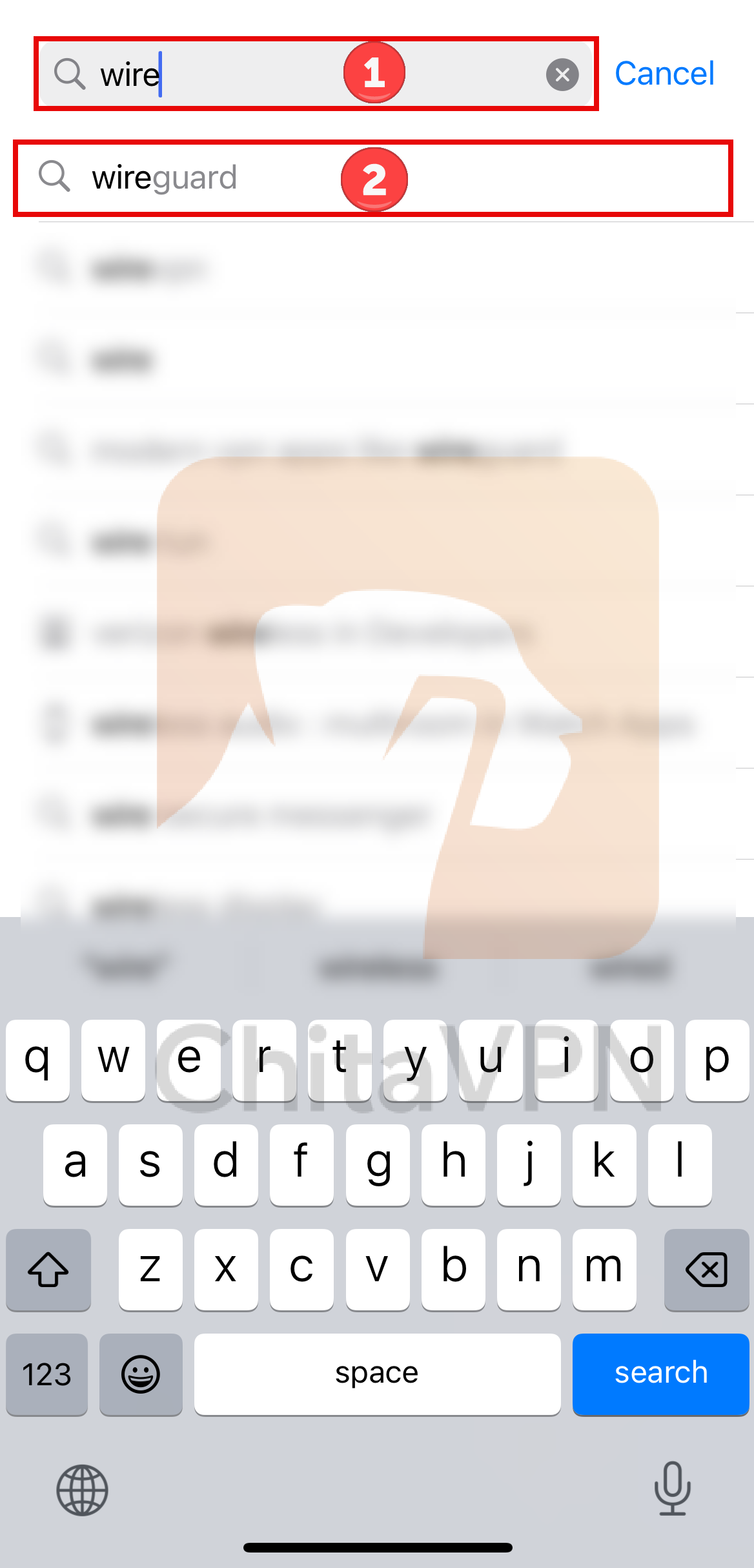 2. Click on the search bar and type "WireGuard" to search for the app.