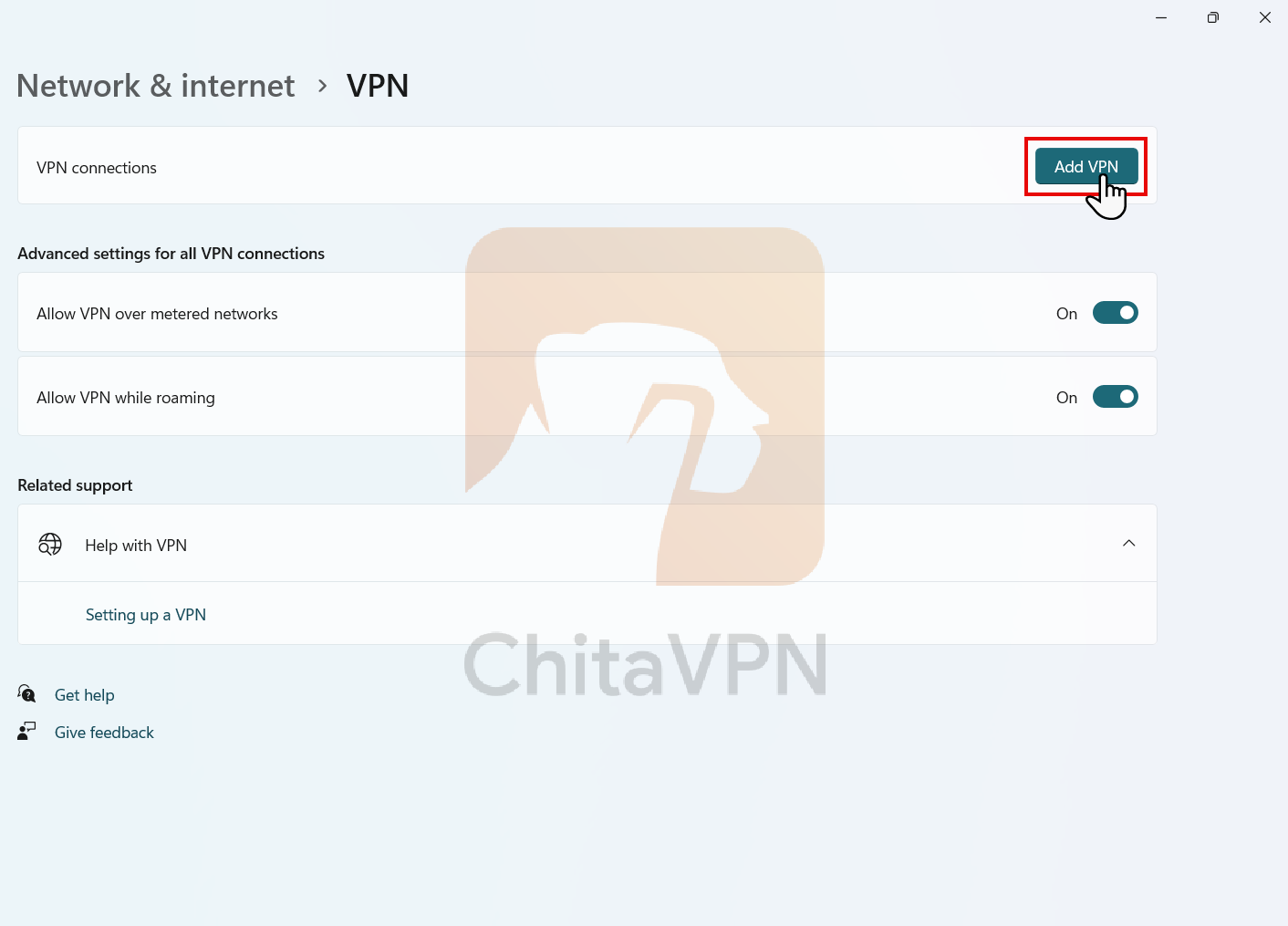 2. Click on the "Add VPN" button to create ikev2 connection.