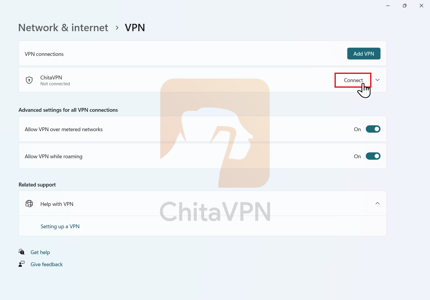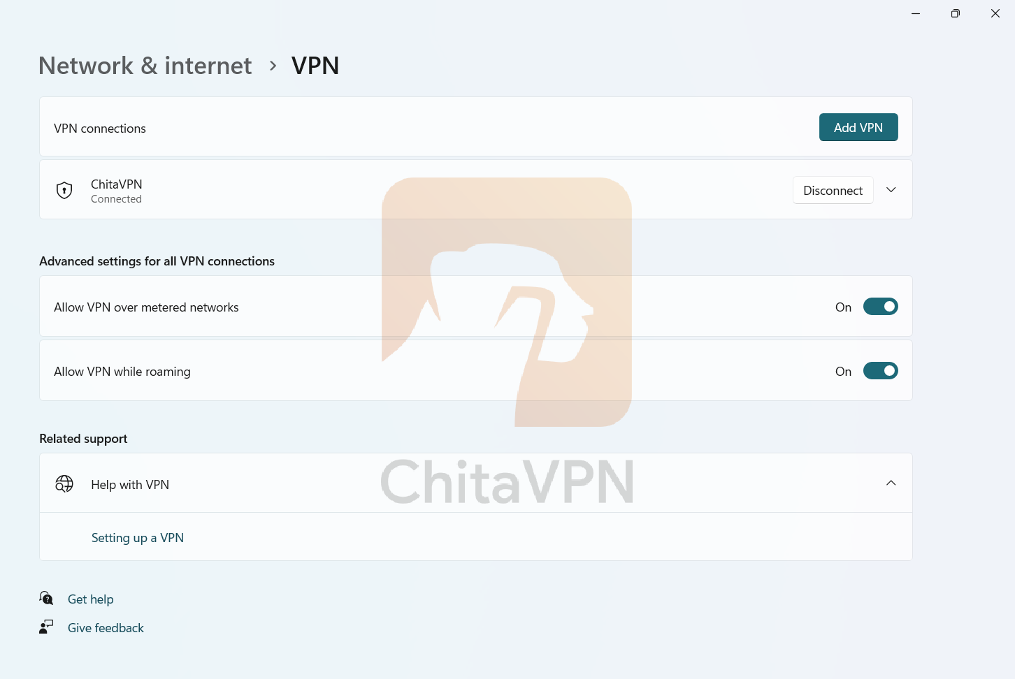 5. When you see this connection status on your screen, it means that you are connected to the ChitaVPN servers.
