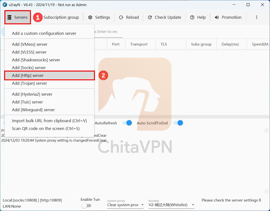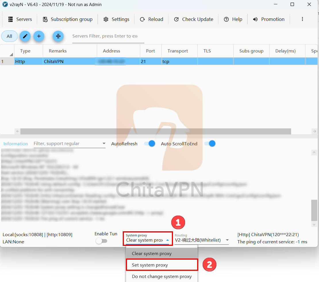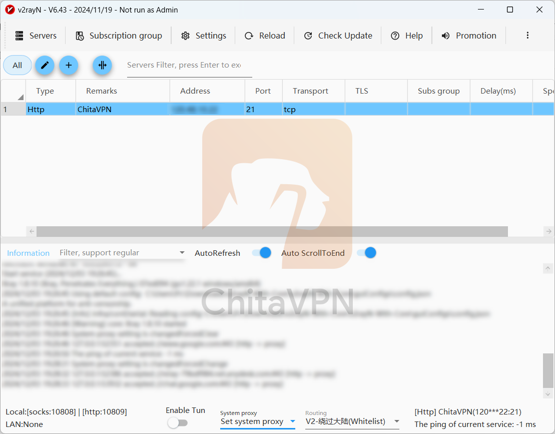To connect to V2RayN, you need a ChitaVPN subscription. Sign up now!