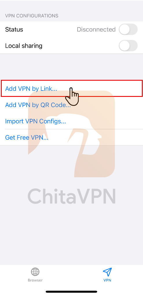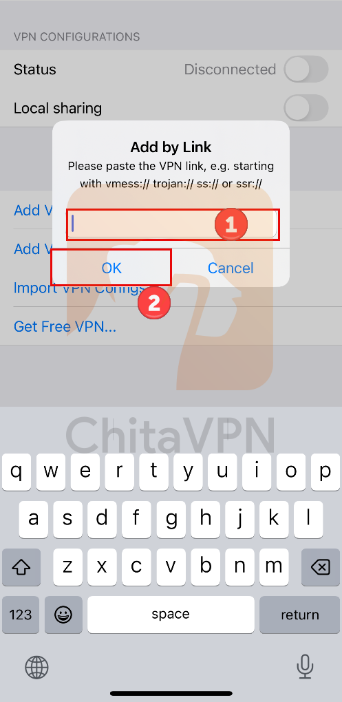 2. In this section, click on "Add VPN by Link," "paste the copied ChitaVPN config link," and then press the "OK" button.