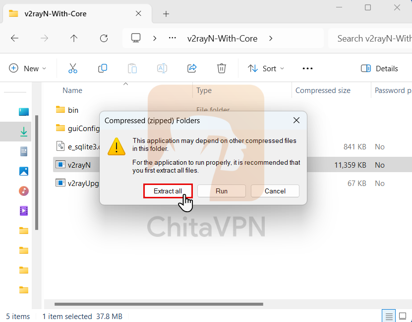 1. Download the V2rayN setup file from the ChitaVPN Download App page, then double-click on the downloaded file to extract it.