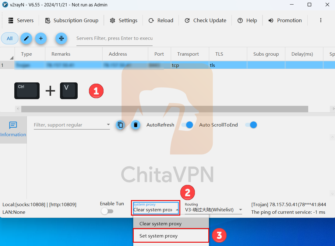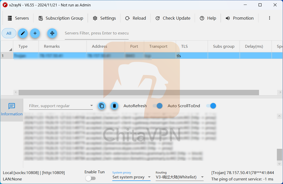 To connect to V2RayN, you need a ChitaVPN subscription. Sign up now!