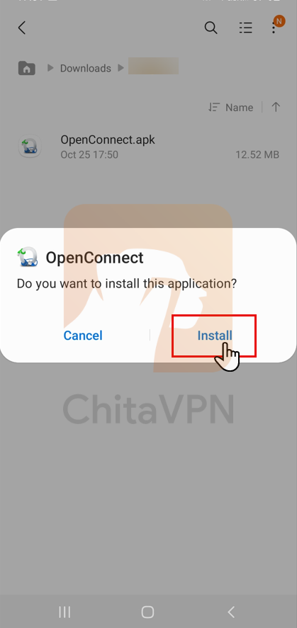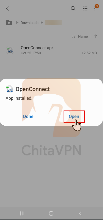 1. Download the OpenConnect App for Your Mobile Device from ChitaVPN's Download App Panel. after that, click on the setup file, select "Install," and wait for the installation to complete.