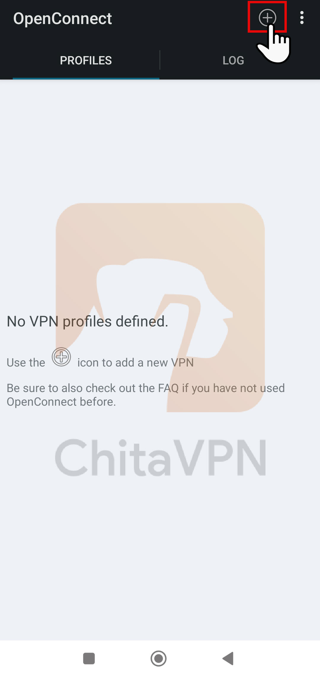 1. Click on the "plus icon" or " (+) " in the top right corner to add a VPN connection.