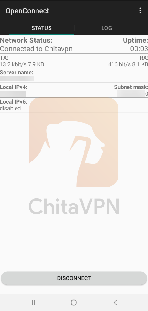6. When you see this connection status on your screen, it means that you are connected to the ChitaVPN servers.